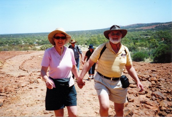 | Kata Tjuta from a distance. Mt. Olga is the one behind Doug and Walpa Gorge is beside it. |