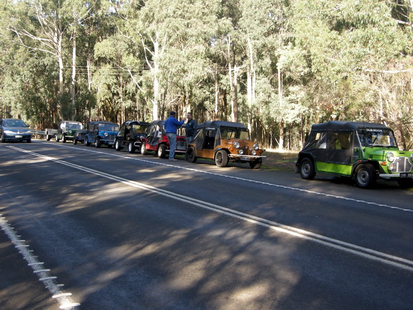 A nervous start. On the down side of Mt. Slide heading for Yea, Scott stopped first to check his smoking. Dave stopped behind and then wouldn't start. All ready to roll again at this stage. |