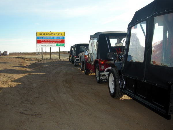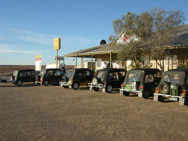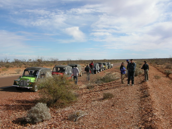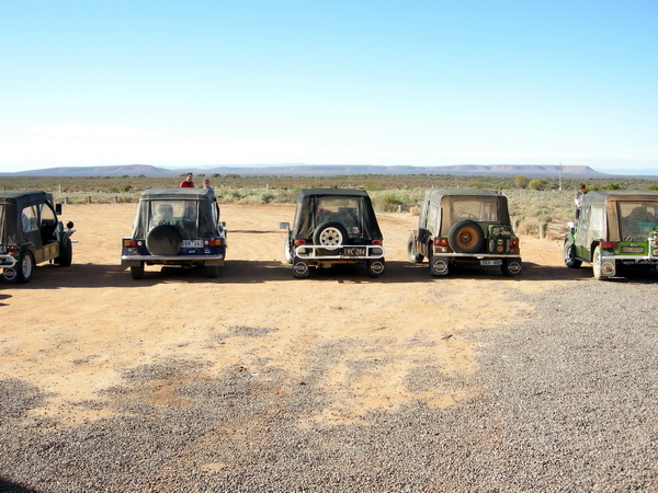 | 14:39 June 2nd When we stopped for lunch at Hawker we met Peter and Jean who had come from Queensland in their Moke. They were looking for the South Australian mob who were on a separate but overlapping trip. As we left we found them but Peter didn't see them and headed north on his own. |