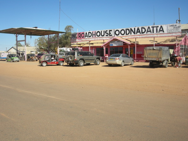 | 13:19 June 4th The Pink Roadhouse at Oodnadatta for a refuel of machines and people. |