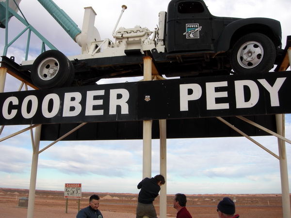 | See ya' later Coober Pedy. From left: Jill, Allen, Gerry, Bob, Richard, Lachlan, Glenn, Scott, Douglas (with eagle above). Laura took the photo. |