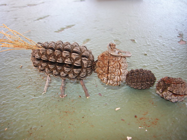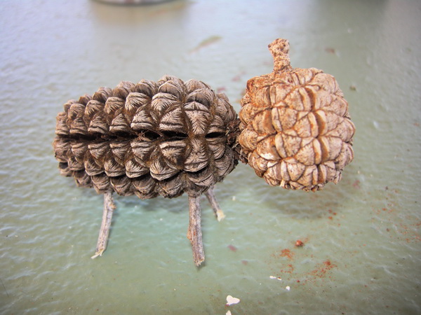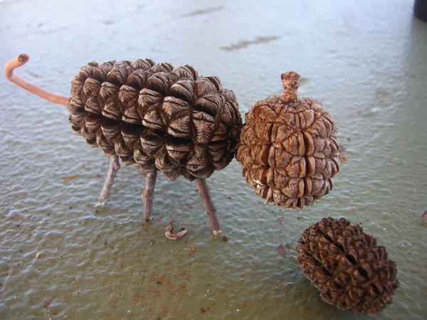 | 12:06 June 8th Not really a person, but watch this banksia-like cone from a native plant morph into a new species of insect while we have a cuppa. Gerry started it, Laura moved it on and a few others helped out a little. |