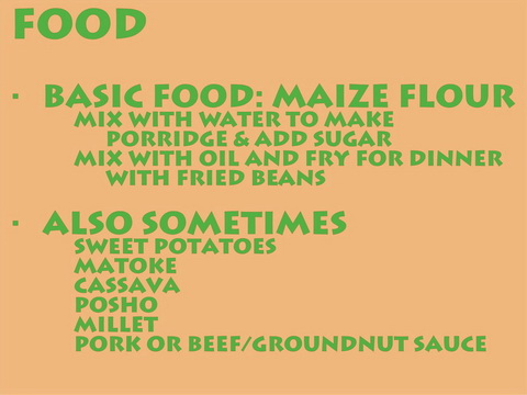 The staple RYDA needs to feed its students is maize flour. It is mixed with water in the morning to make a 'porridge' to which sugar is added. In the evening it is mixed with oil and fried and served with fried beans. Vegetables and fruit supplement the diet when available. These are very simple requirements!