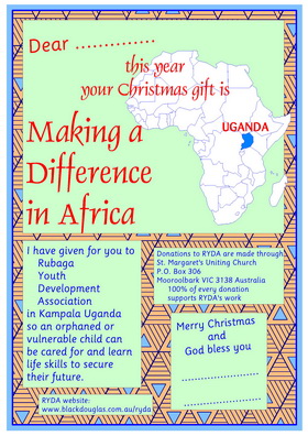 Our thanks to these people for the special effort and creative thinking that went into their gifts. What special thing can you, or your group do to reach out to the RYDA children this Christmas?