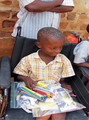 We are so excited to see the pictures and read of the students and their joy at receiving these things. It was especially nice to see Serwanga Brandon with his new wheelchair and his books and pens! I'm sure it will be a help to he and his Mother. It is wonderful to read and then to actually see the great blessing these goods have already been to SO many!! Thank you for your generosity in sharing with others that are in need around you.
