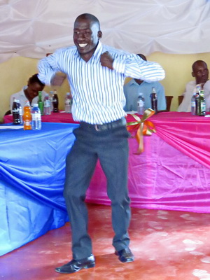 Brian Katumba is a RYDA staff member, seen here showing his moves at the opening celebrations of St. Margaret Hall. Brian is a Ugandan, 28 years old, born to Mr. Richard Charles Lwanga and Ms Jane Nyahayo but raised by an old grandmother now 80 years. His family remains in the Buloba-Wakiso District, adjacent to RYDA.