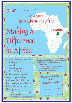 Join Don and Marg who have already donated for their Certificates - one for each of their 13 grandchildren. They also make a display board of photos from our site so that RYDA is really with the family when they gather on Christmas Day.