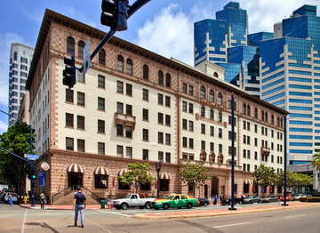 ...at the breakfast bar in the cafe of 500 West Broadway, San Diego.