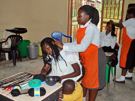 Jenifer was referred by Kaliro District which is many hours drive away. She is 13 years old and lost both her parents at the age of two. She has begun a hairdressing course and after just two months the transformation in this young lady is clear to all staff.
