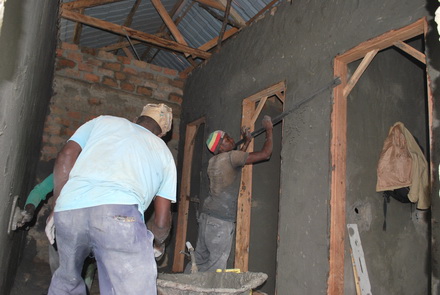 Built with their own hands, this bathroom will house the first non-pit latrine on the site. It will be connected to the town water supply to provide a sanitary system that flushes to a septic tank. All that is needed to complete it is: