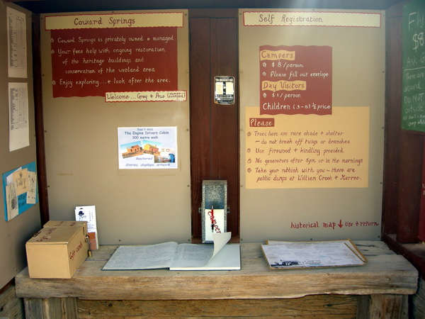 | 14:27 June 3rd Coward Springs is a man-made oasis. A bore was sunk to service the original railway and it started a permanent water flow. There is a cost to explore the area or camp, but payment is an honour system. |
