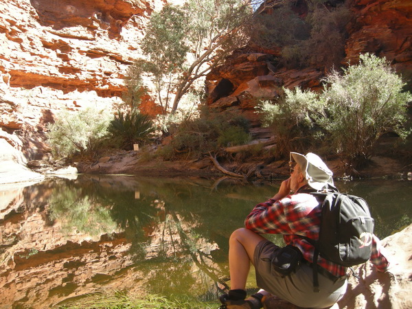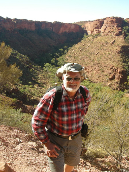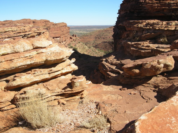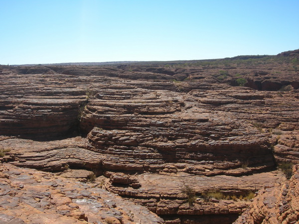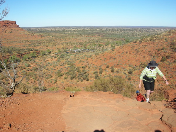 | 11:02 June 9th About two thirds of the way up Heart Attack hill at the start of the King's Canyon Rim Walk. The car park can just be seen in the middle distance. |