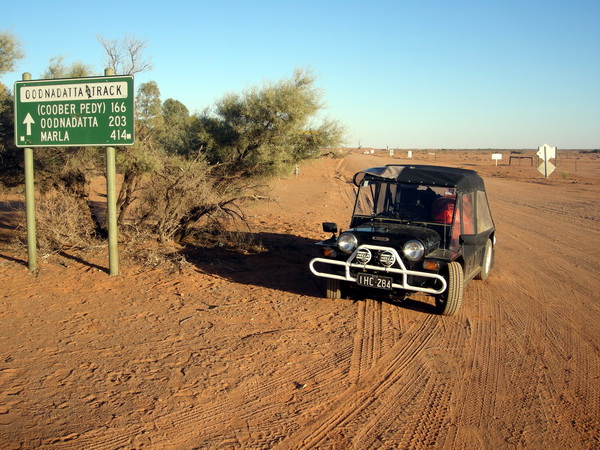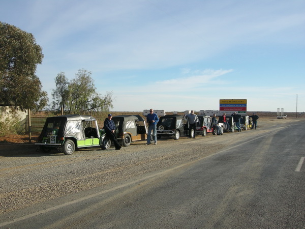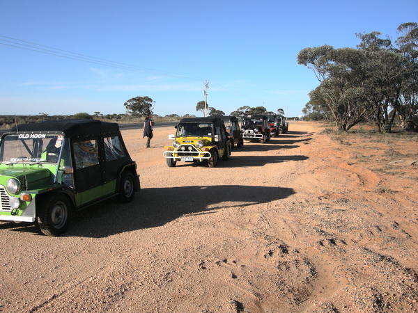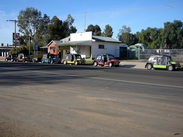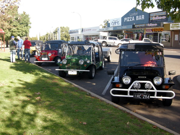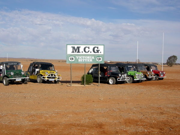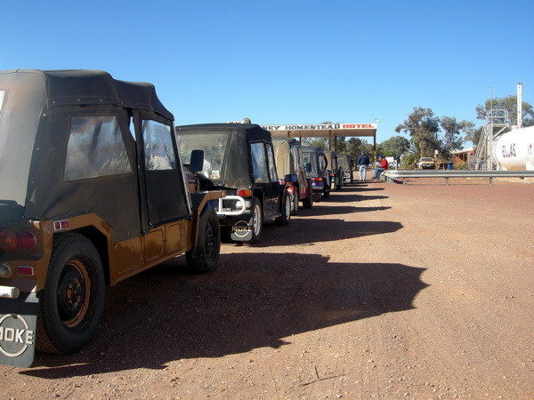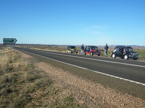 | 14:39 June 2nd When we stopped for lunch at Hawker we met Peter and Jean who had come from Queensland in their Moke. They were looking for the South Australian mob who were on a separate but overlapping trip. As we left we found them but Peter didn't see them and headed north on his own. |