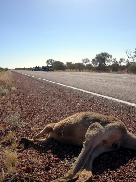 | 12:37 June 5th A morning tea stop at Marryat Siding on the way to Erldunda and BD is attacked by these monsters. It didn't take long before they learnt to keep their distance. |