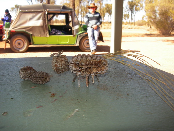 | 12:06 June 8th Not really a person, but watch this banksia-like cone from a native plant morph into a new species of insect while we have a cuppa. Gerry started it, Laura moved it on and a few others helped out a little. |