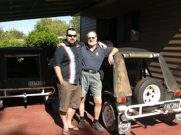 | 13:52 June 11th Every one, except Douglas, knew that his son Scott was flying up from Melbourne this day so they could spend a couple of days together. What a surprise! He rang Glenn from the airport then caught a taxi into town to meet us at the Coles car park where we gathered after puncture fixing. |